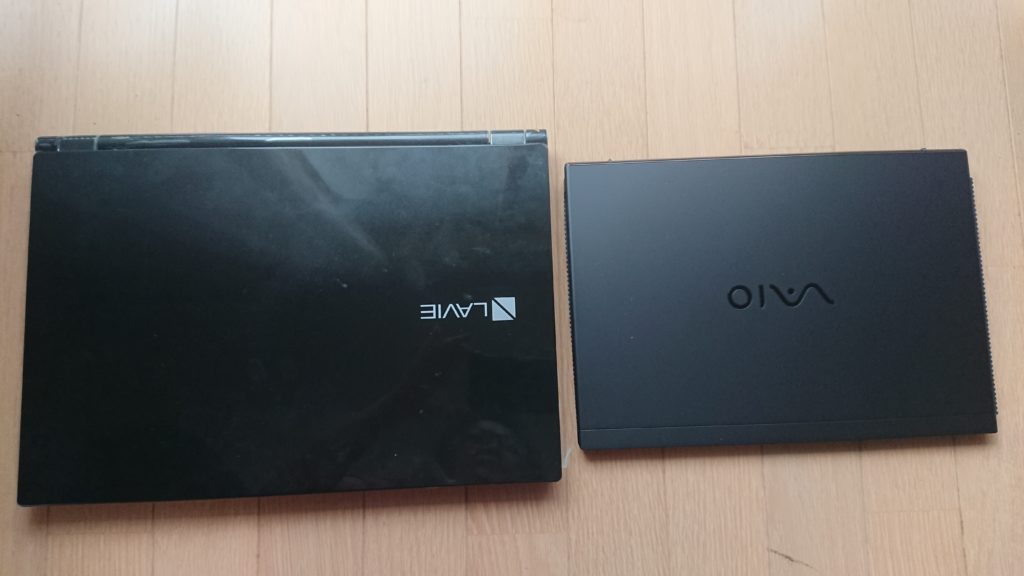 左のNEC LAVIEは15.6インチ、右のVAIOは14インチワイド。