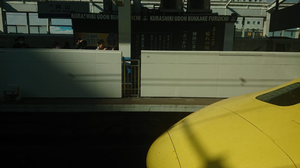 ふと目を覚ますとちょうど岡山駅に着いたところ。