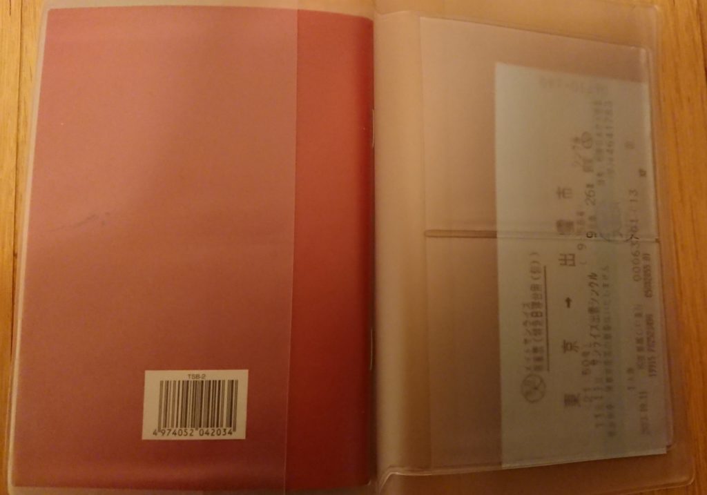 こんな感じで診察券をいれるところに半券や切符をいれておきます。
